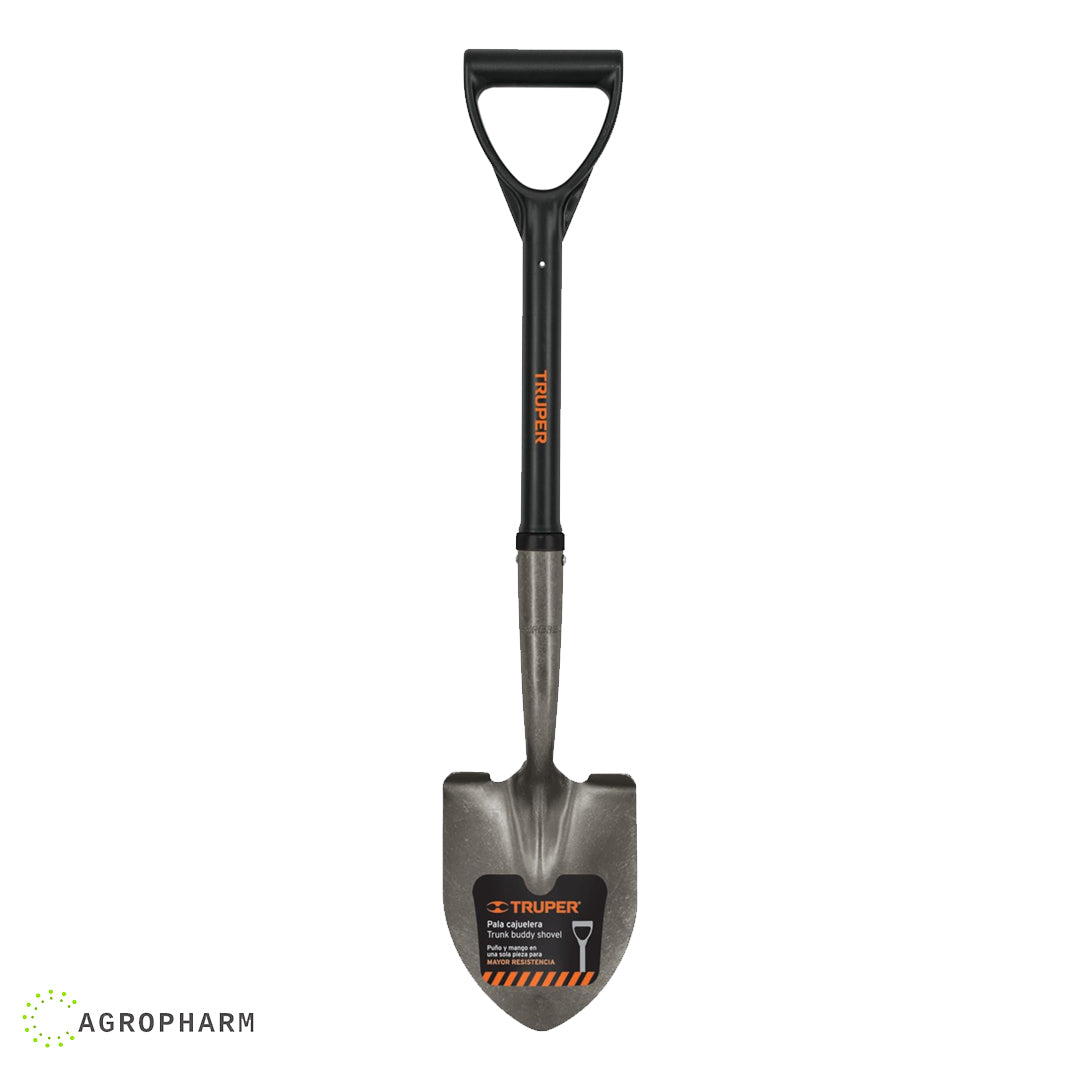 Ašov mali sa gazištem od kaljenog čelika sa zaštitnim premazom i komfornom D drškom. Zbog svoje veličine, veoma je praktična i lako se može odložiti u gepek automobila, caddy i kombija.
